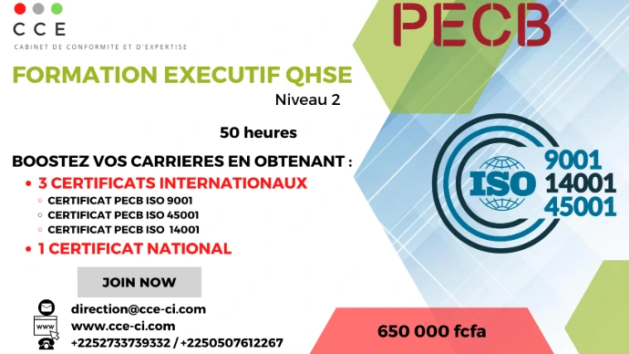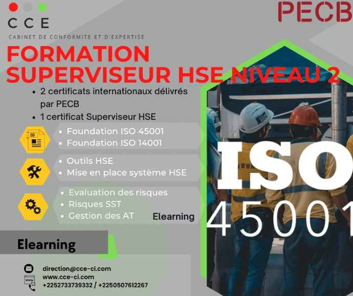 Pour obtenir cette preuve de compétence vous devez réaliser chaque formation de la catégorie. A la fin de chaque catégorie vous aurez des certificats internationaux. La catégorie compte les formations OUTILS HSE, GESTION DES AT, EVALUATION DES RISQUES, FOUNDATION ISO 45001 PECB et FOUNDATION ISO 14001 PECB.