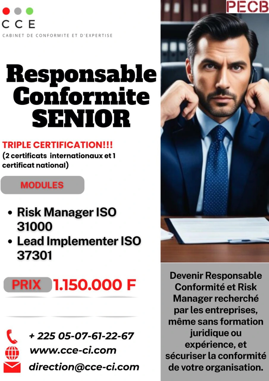 La formation Responsable Conformité Senior est un programme intensif conçu pour doter les professionnels des compétences nécessaires à la mise en œuvre, la gestion et l'amélioration continue des systèmes de management de la conformité et de la gestion des risques selon les normes internationales ISO 37301 et ISO 31000.