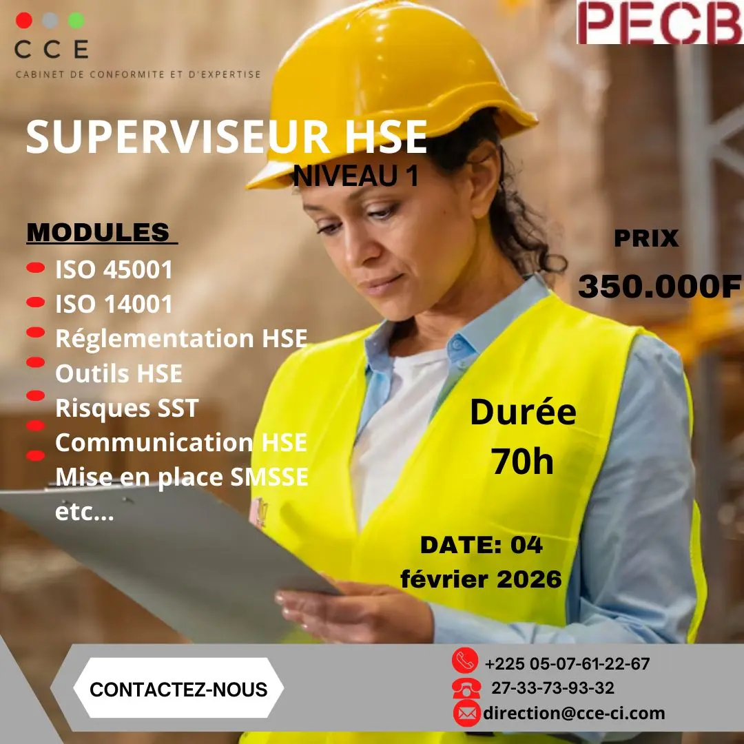La formation Superviseur HSE est conçue pour former des professionnels capables de gérer efficacement la santé, la sécurité et l’environnement au sein des entreprises. En l’espace de 2 mois, les participants acquerront des compétences essentielles pour identifier, analyser et gérer les risques professionnels, tout en maîtrisant les normes ISO 45001 et ISO 14001.