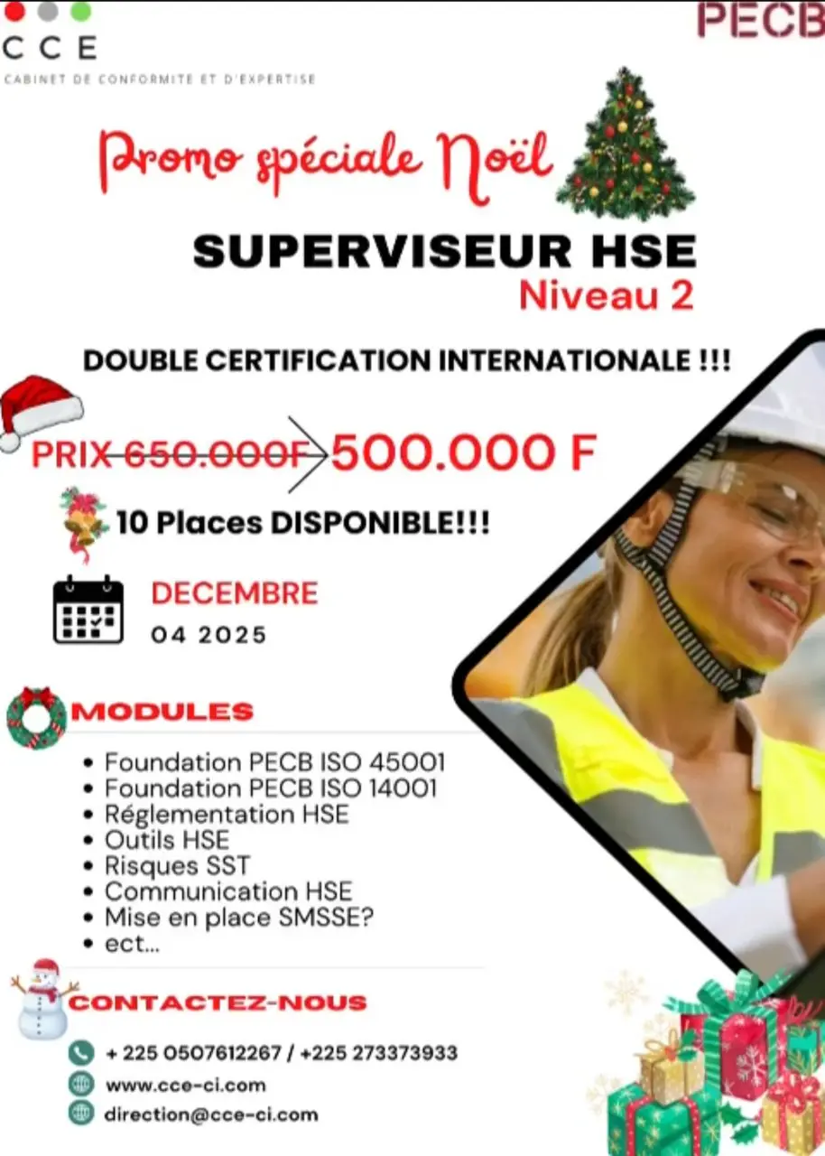 - Développer des compétences opérationnelles pour superviser et coordonner les activités HSE en entreprise.